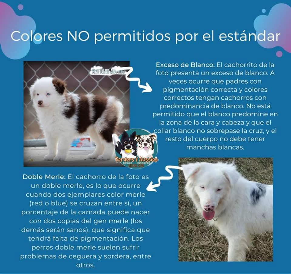 En esta ocasión les quise compartir los colores permitidos y no permitidos del Australian Shepherd y Miniature American Shepherd, me gustaría aclarar que algunos de estos colores son permitidos en el Border Collie, pero no en estas razas.